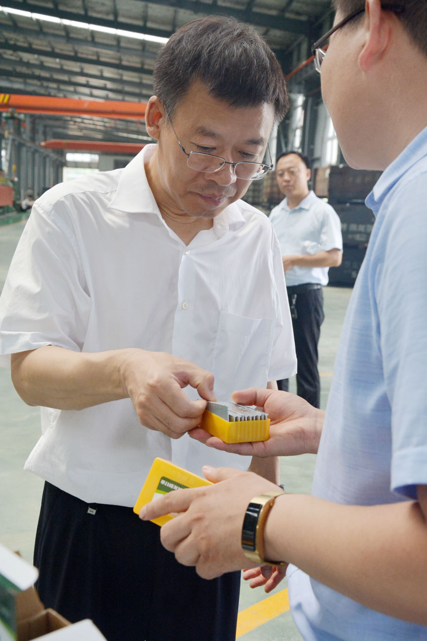 隨后,陪同李書記參觀了生產環境以及生產工藝,并詳細了解了生產設備和產品。