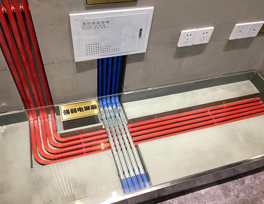 在標準裝修施工時,強弱線路必須采用PVC管進行套管保護,并通過不同顏色的PVC管進行區(qū)分,通常紅色PVC管為強電,藍色PVC管為弱電。